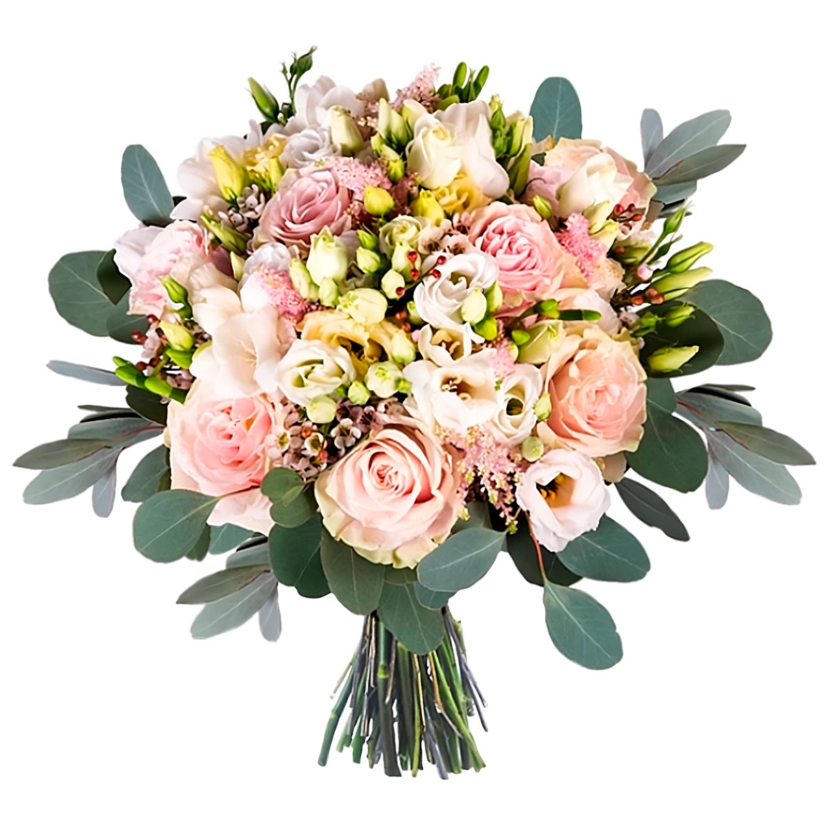 | Состав | Пионовидные розы, Розы, Фрезии, Эустомы |
