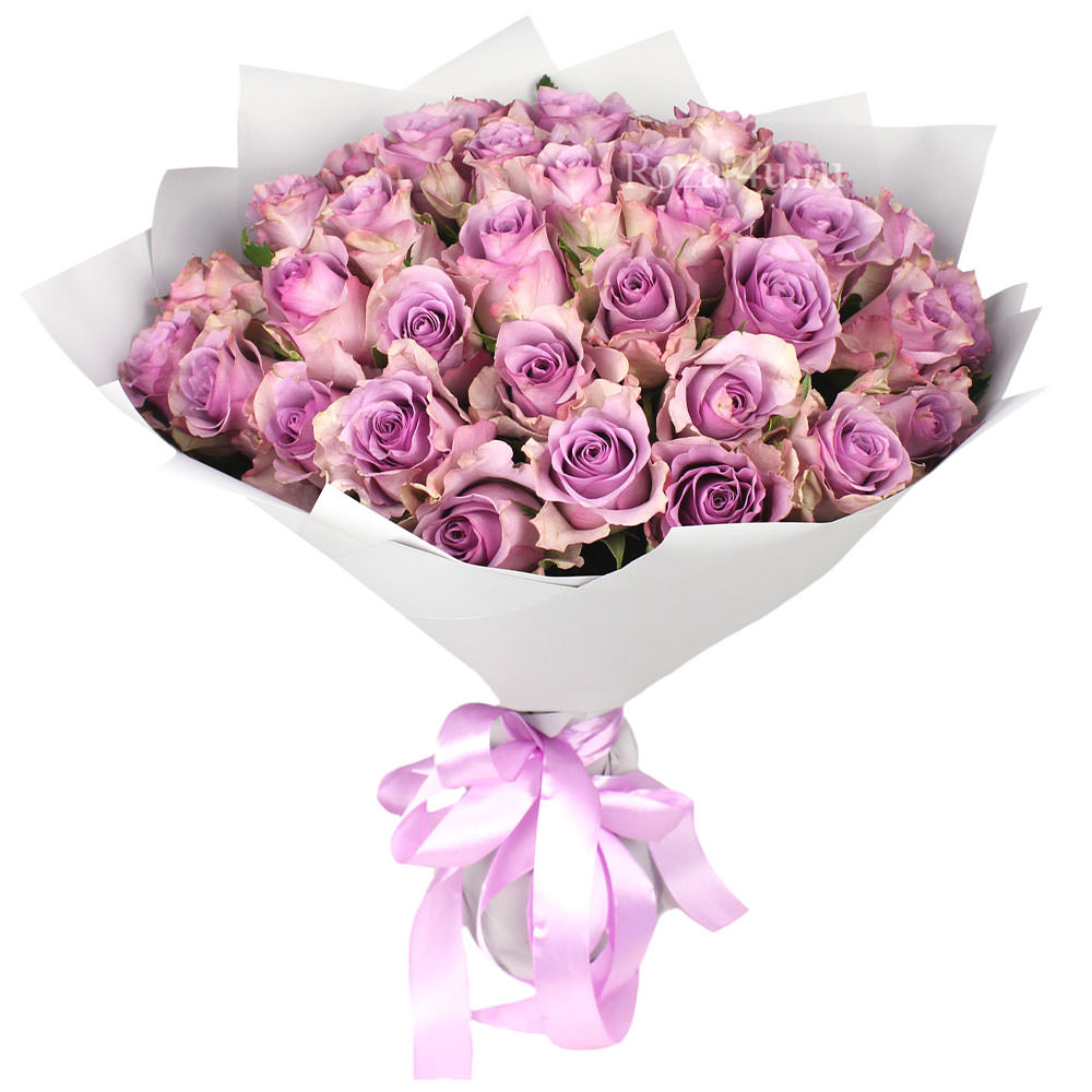 Роза фиолетовая. Упаковка (лента, пленка, крафт, сетка, пленка матовая)
