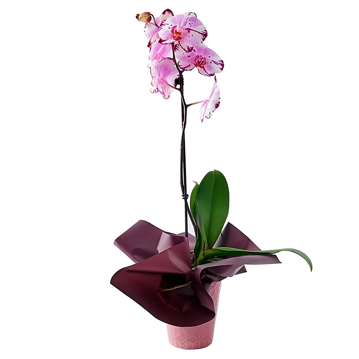 Пятнисто-розовая орхидея в горшке — это оригинальное и элегантное растение, которое станет настоящим украшением для дома или офиса. Великолепные пятнисто-розовые бутоны этого цветка создают уникальный образ и удивительную атмосферу уюта. Орхидея подарит радость и тепло, превращая обычные дни в настоящий праздник. Этот подарок подойдет для любого случая, будь то день рождения, юбилей или просто знак внимания.